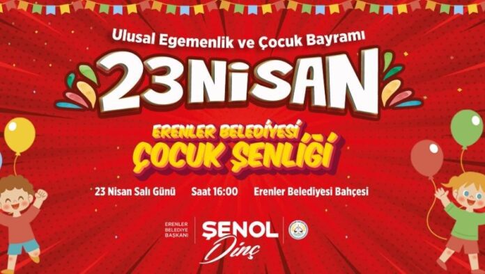 Erenler Belediyesi 23 Nisan Ulusal Egemenlik ve Çocuk Bayramı kutlamaları kapsamında düzenleyeceği Çocuk Şenliği ile belediye hizmet binası bahçesinde çocukları misafir edecek. 23 Nisan Salı günü belediye hizmet binası bahçesinde, içerisinde şişme oyun parkları, animasyonlar, ikramlar ve birçok etkinliğin bulunacağı Çocuk Şenliği saat 16.00’da başlayacak ve 22.00’da sona erecek.