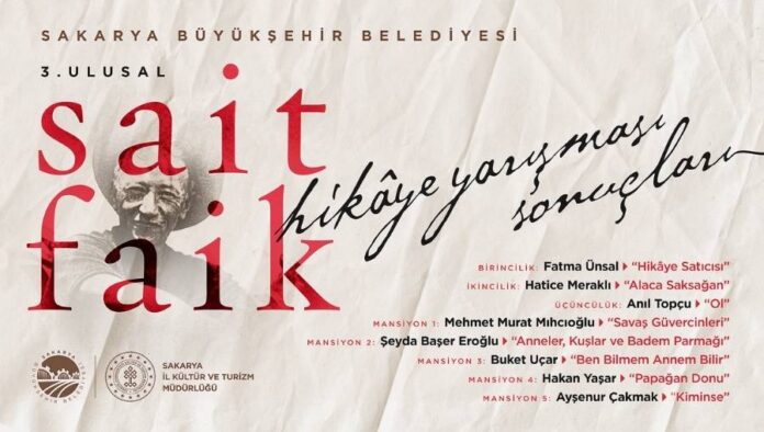 Sakarya Büyükşehir Belediyesi ve Sakarya İl Kültür ve Turizm Müdürlüğü ile ortaklaşa düzenlenen 3. Ulusal Sait Faik Abasıyanık Hikâye Yarışması sonuçlandı.