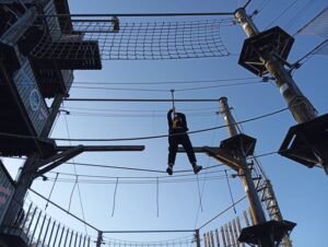 Programın sonunda öğrenciler, zipline hattında ağaçların arasından geçerek unutulmaz bir deneyim yaşadı. Macera Parkı’nda düzenlenen etkinlik, uluslararası öğrencilerin hem eğlenmesini hem de sosyal uyumlarını güçlendirmesini hedefledi.