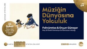 23 Şubat’ta Ofis Sanat Merkezi’nde çocuklara yönelik “Müziğin Dünyasına Yolculuk” etkinliği düzenlenecek. Aynı akşam Orhangazi Kültür Merkezi’nde Mehmet Kemiksiz ve Enderun Hafızlar Topluluğu konseri olacak.