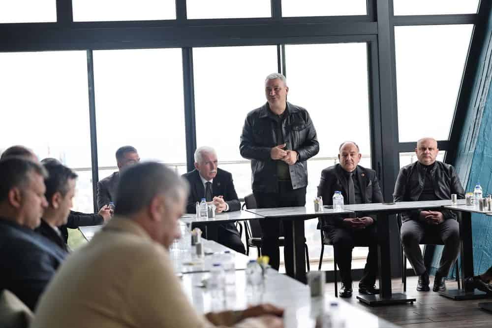 Sakarya’nın 16 ilçesinin muhtarlar derneği başkanları, geleneksel aylık istişare toplantılarının bu ayki durağı olarak Serdivan Belediyesi’nde bir araya geldi. Toplantıya, Serdivan Belediye Başkanı Osman Çelik, Serdivan Muhtarlar Derneği Başkanı Fikret Can ve Belediye Başkan Yardımcısı Adem Kıyak da katıldı. Buluşmada şehrin tüm yerel dinamikleri aynı sofrada buluştu.